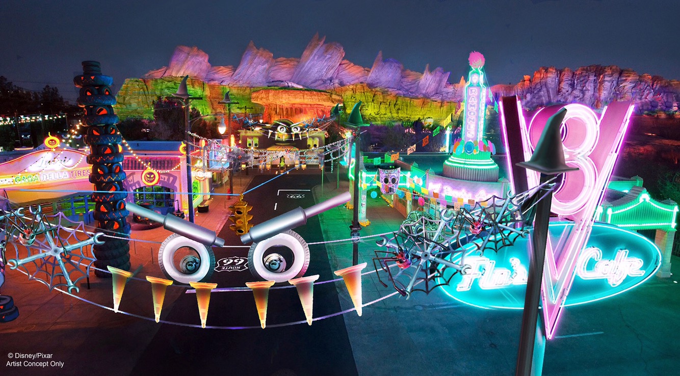 Lightning McQueen, Mater, Cruz, Red and DJ will be all dressed up–as a super hero, a “van-pire,” a pirate, a clown and a punk rocker, ready to go “trunk-or-treating.” Attractions transform, too, with Mater’s Junkyard Jamboree turning spooky as the Graveyard JamBOOree, and Luigi’s Rollickin’ Roadsters getting a seasonal twist to become Luigi’s Honkin’ Haul-O-Ween.