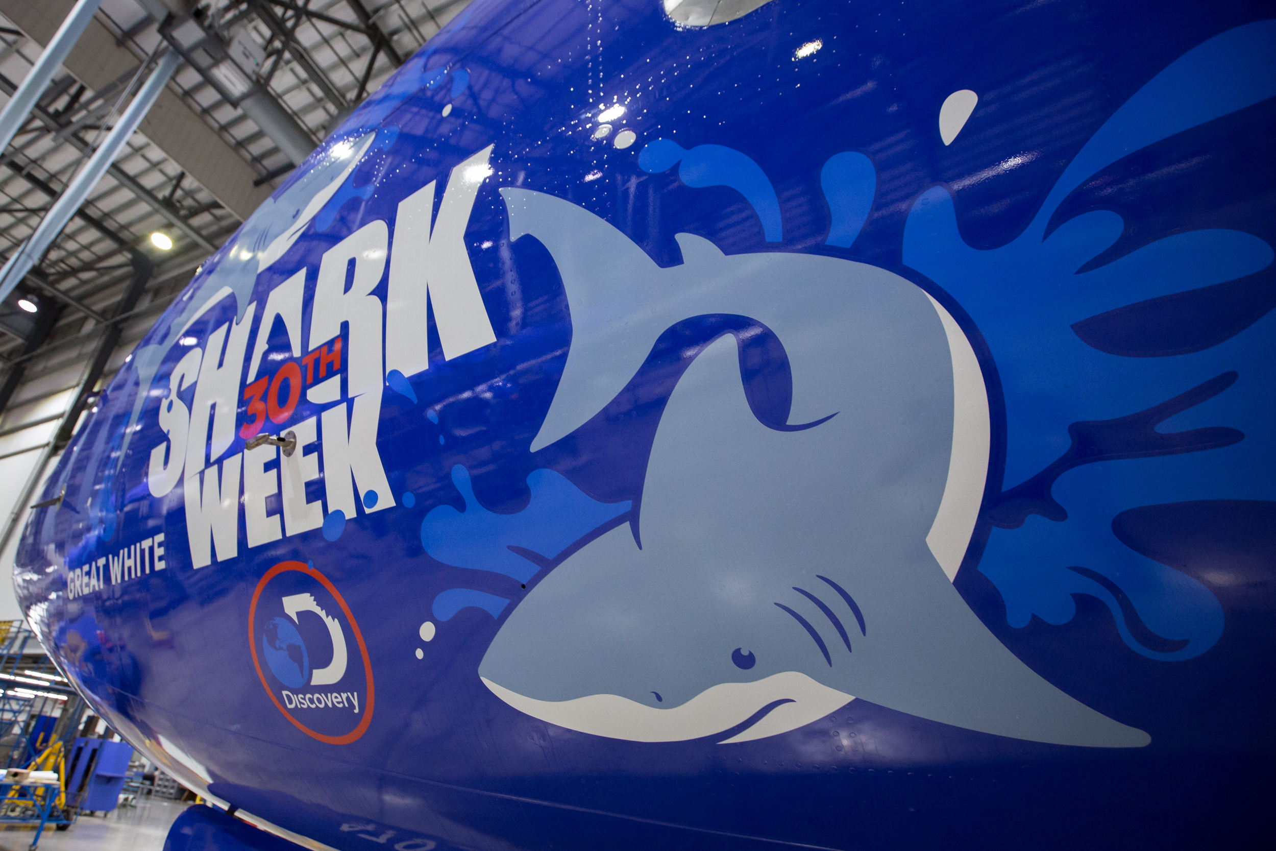 The five aircraft celebrate the 30th anniversary of Shark Week, one of the most popular and longest-running televised events in history. Each aircraft proudly displays custom artwork featuring a species of shark often showcased in a Shark Week episode.